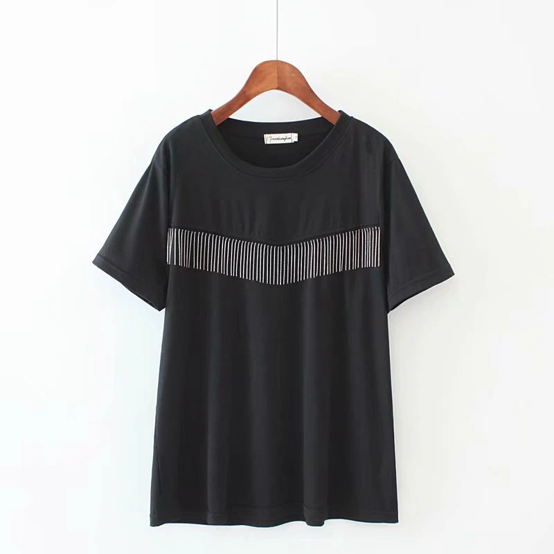 Plus Size Women's Short Sleeved T-shirts Casual Tassel White Black t-Shirts Oversized Tops