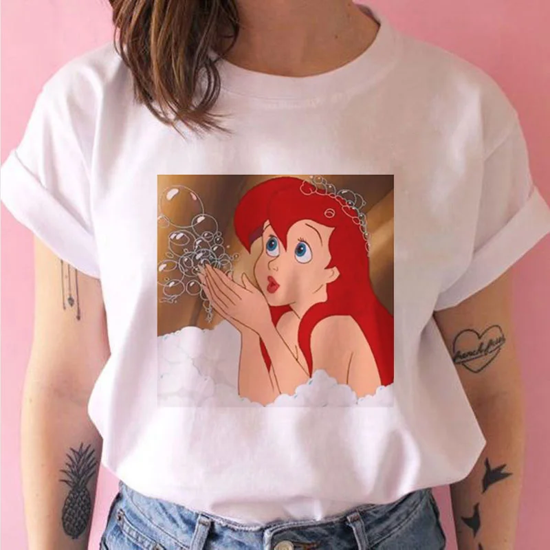 Милая забавная футболка с принтом «Принцесса Русалочка, которая любит дуть пузыри», новая летняя женская одежда Harajuku Ins с круглым вырезом, футболка