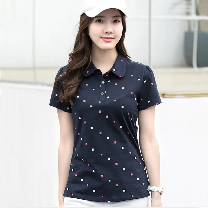 Женская футболка с короткими рукавами и воротником на пуговицах