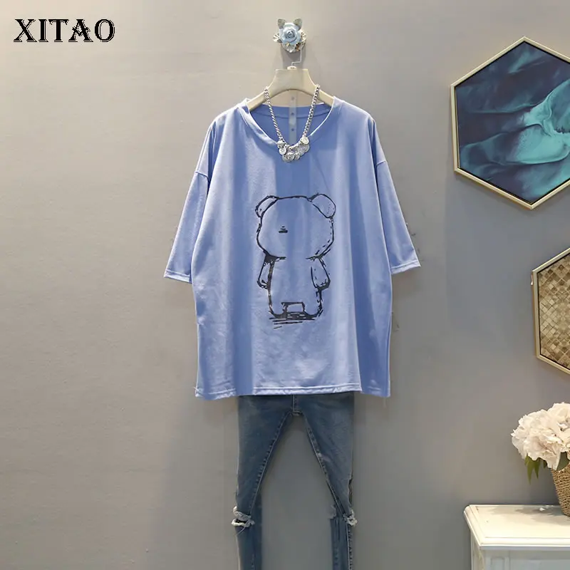 XITAO/футболка с принтом, модная новинка 2020, весенняя, с рукавом три четверти, с круглым вырезом, элегантная, богиня веер, повседневная, свободная, плиссированная футболка, Топ DMY4090