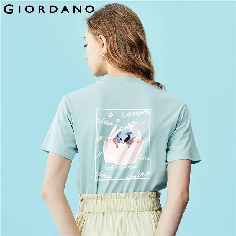 Giordano женские футболки знак зодиака Близнецы печатных футболка с круглым вырезом под горло короткий рукав Soild Лето Camiseta Mujer 99390108