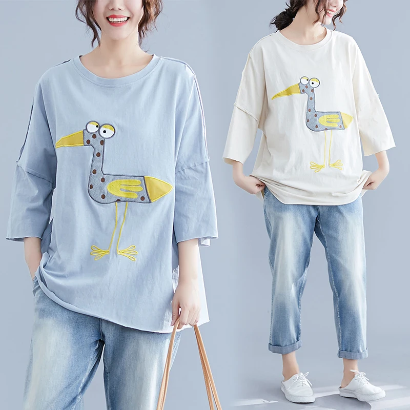 Свободная футболка с принтом персонажа, женская летняя Базовая Повседневная футболка с круглым вырезом, Женская Модная хлопковая Футболка с рукавом «летучая мышь»