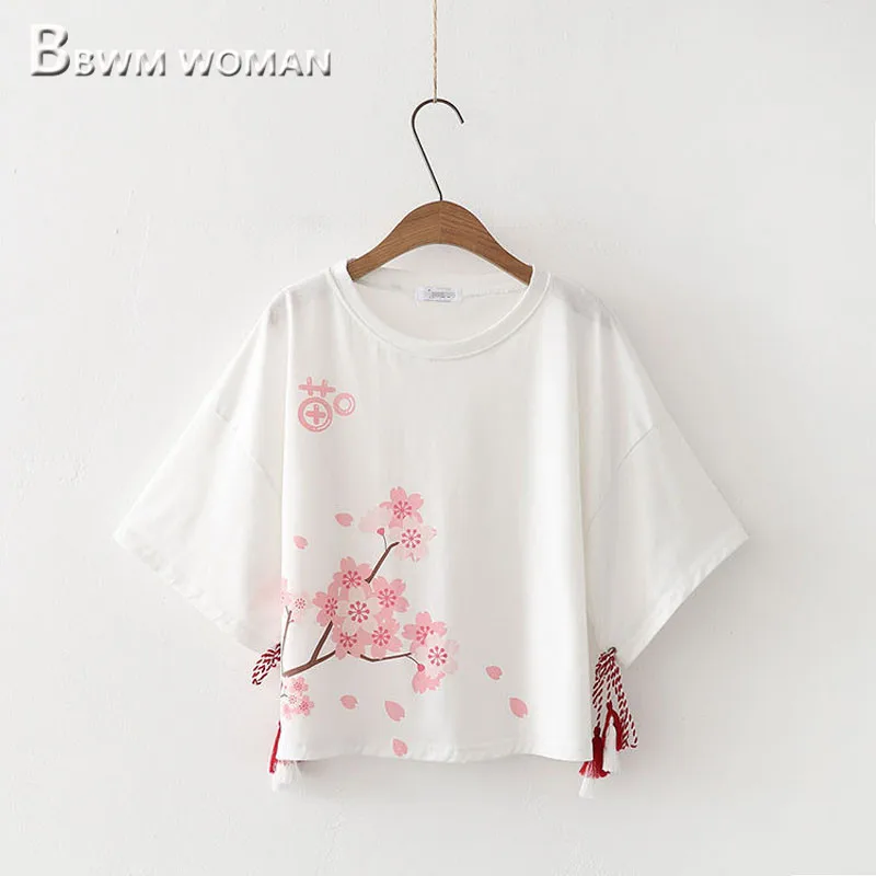 2019 летние Kawaii женские футболки с цветочным принтом белые и черные женские футболки