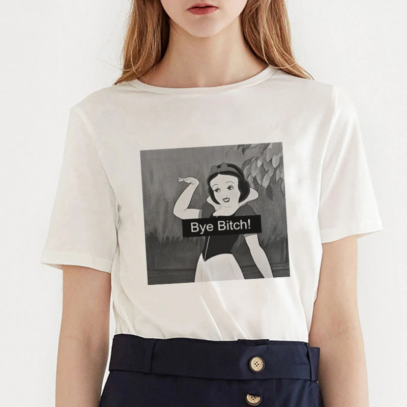 Летняя футболка принцессы в стиле Харадзюку, с круглым вырезом, в стиле панк, эстетика, футболка с принтом «Bye Bitch», Повседневная Уличная одеж...