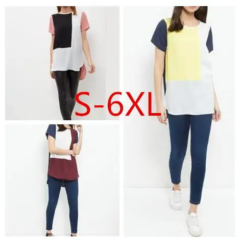 Футболка 2020 размера плюс 6XL летняя новая мода прибытие Лоскутная Повседневная Свободная винтажная шифоновая Футболка женская XXXXL 5XL
