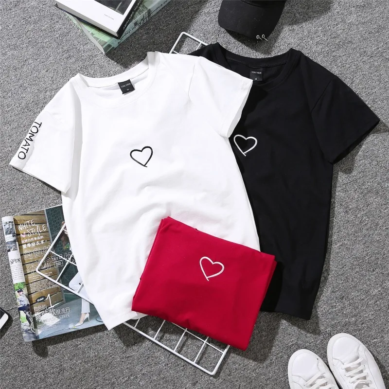 Простые кофточки Wild короткий рукав Футболка женская вышивка любовь лето новая буквенная индивидуальность парная одежда футболка