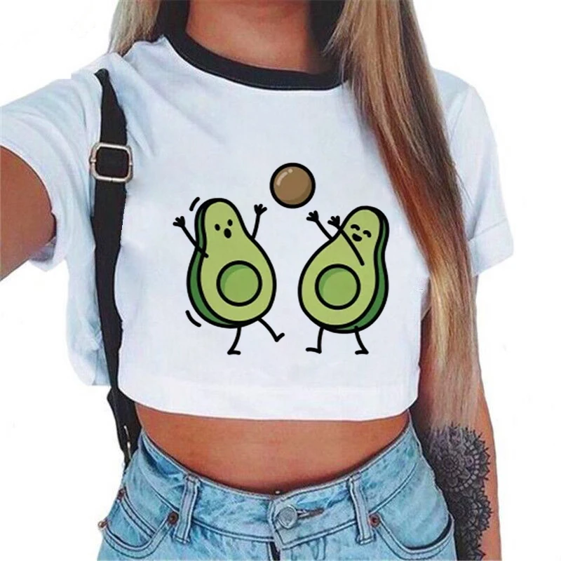 2020 Vegan Футболка женская Харадзюку каваи мультфильм авокадо животное печать футболка короткий топ для женщин Vogue повседневные топы Футболка ...
