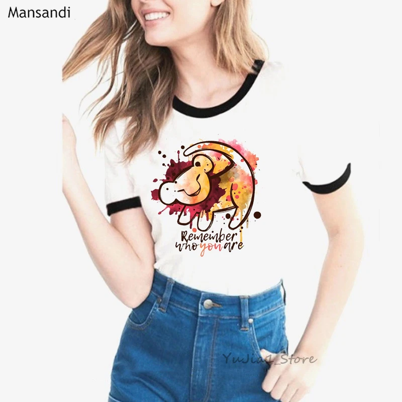 Вспомним, кто ты, акварельный Лев, король Симба, женская футболка Акуна Матата, белый летний топ, футболка, femme camiseta mujer