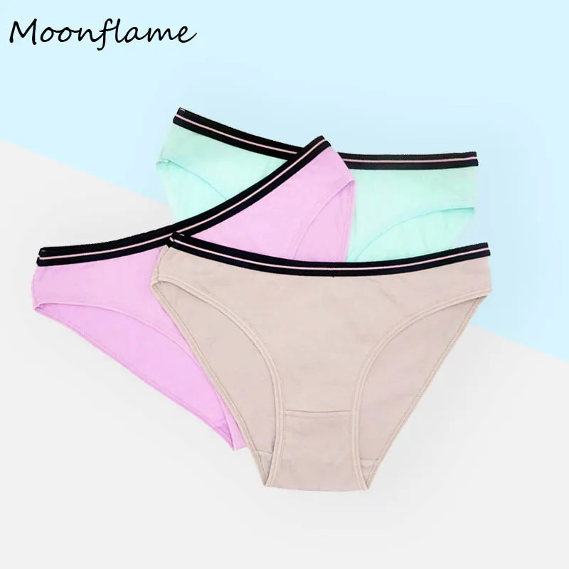 Moonflme 3 шт./лот Новое поступление 2019 хлопок сплошной цвет женские трусы 89261