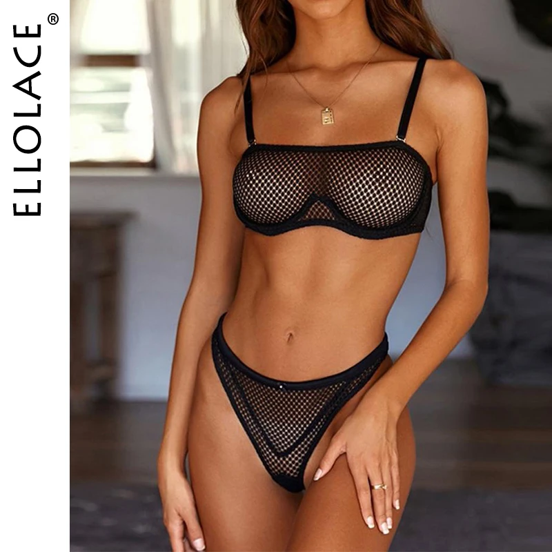 Ellolace, сексуальное кружевное нижнее белье, комплект с бюстгальтером, женское нижнее белье, набор для вечеринки, s, прозрачный сетчатый Бюстга...