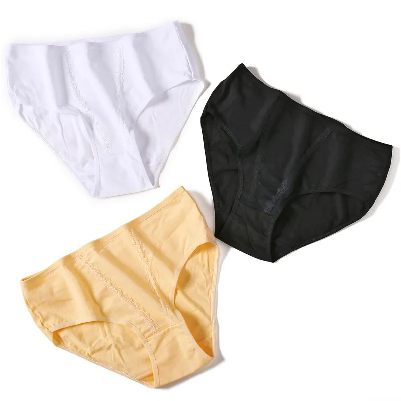 3 шт./лот/, кружевные хлопковые трусы, женские трусы, дышащие трусы для девочек, женские бесшовные трусы со средней талией DULASI