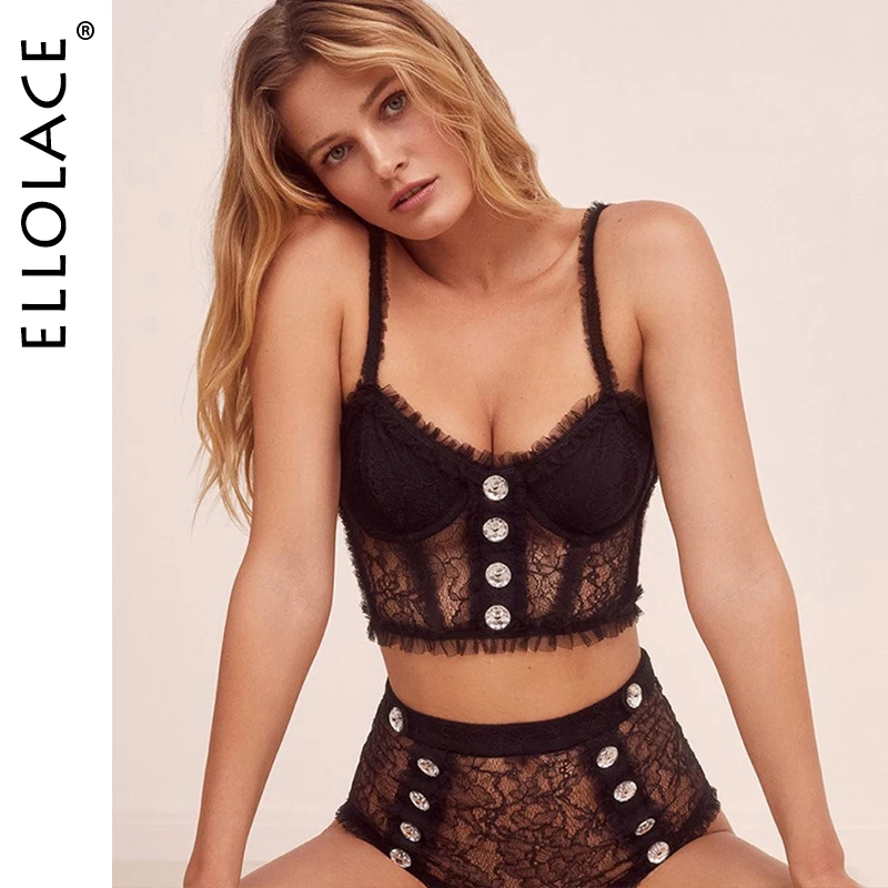 Ellolace новый сексуальный комплект с бюстгальтером, комплект кружевного сетчатого нижнего белья, Женский беспроводной бюстгальтер без косточ...