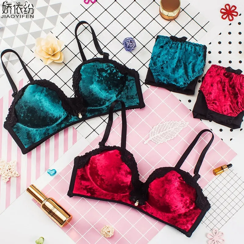 JYF зима высокое качество бархат женское нижнее белье пикантные кружево комплект с бюстгальтером удобное белье Мягкий Бюстгальтер пуш ап и