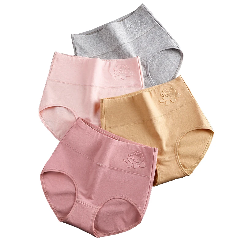 Женские трусики размера плюс из чистого хлопка, эластичное мягкое нижнее белье для живота, трусы с высокой талией, облегающие женские трусики