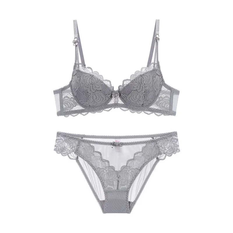 Сексуальный женский комплект с бюстгальтером кружева 1/2 тонкая чашка Бюстгальтер короткие наборы пуш-ап на косточках женское свадебное ниж...