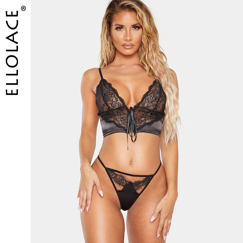 Ellolace, сексуальный кружевной комплект нижнего белья для женщин, глубокий v-образный вырез, прозрачный бюстгальтер, вечерние комплекты, компл...