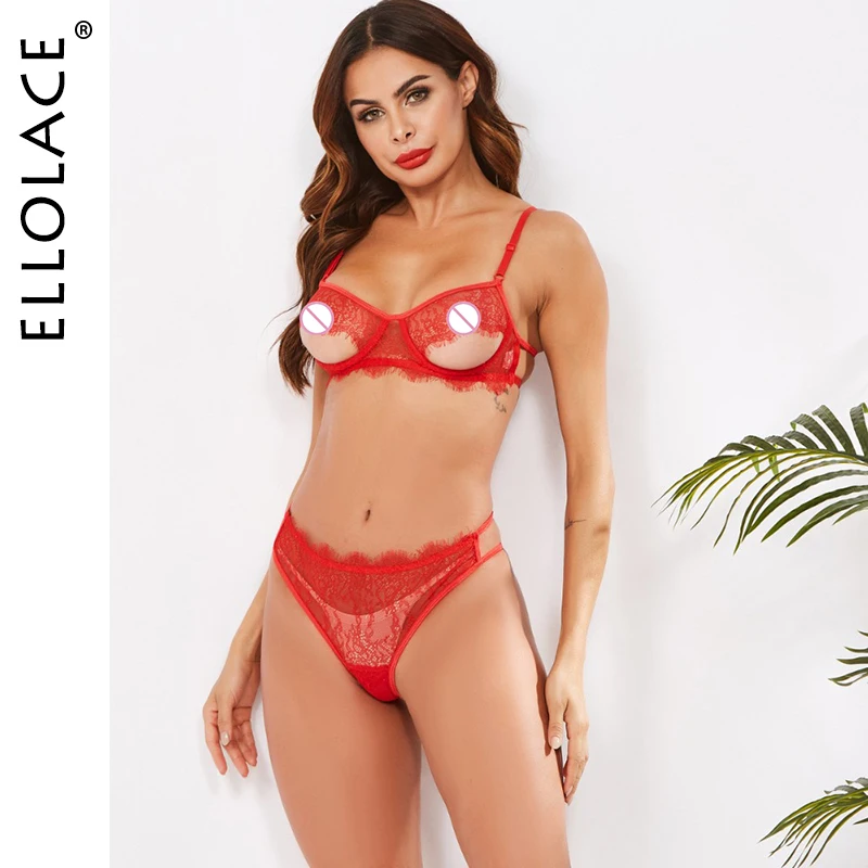Ellolace, Сексуальное Красное Кружевное женское нижнее белье, комплект с бюстгальтером, нижнее белье, набор женского нижнего белья, открытые сексуальные бюстгальтеры, вечерние комплекты, новинка 2020, оптовая продажа