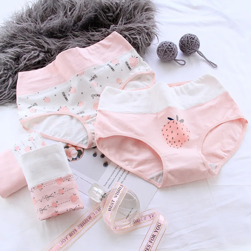 Менструальные трусики с рисунком клубники для женщин, нижнее белье с высокой посадкой из мягкого хлопка, женские хлопковые трусы, нижнее бе...