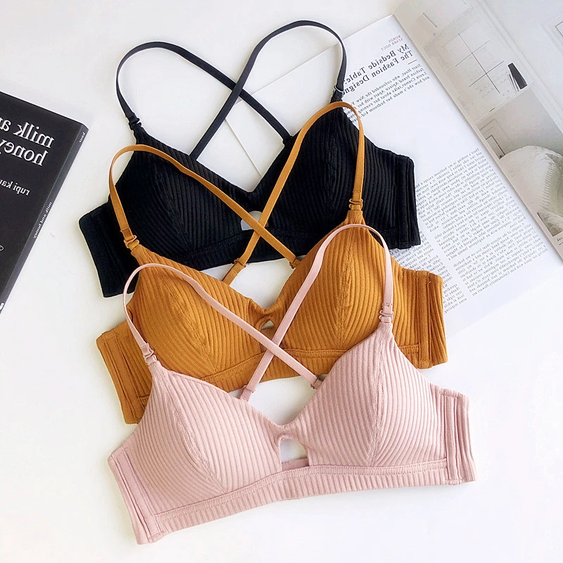 Хлопковый бюстгальтер без косточек, треугольная чашка, сексуальный комплект, комфортный высококачественный беспроводной бюстгальтер, жен...