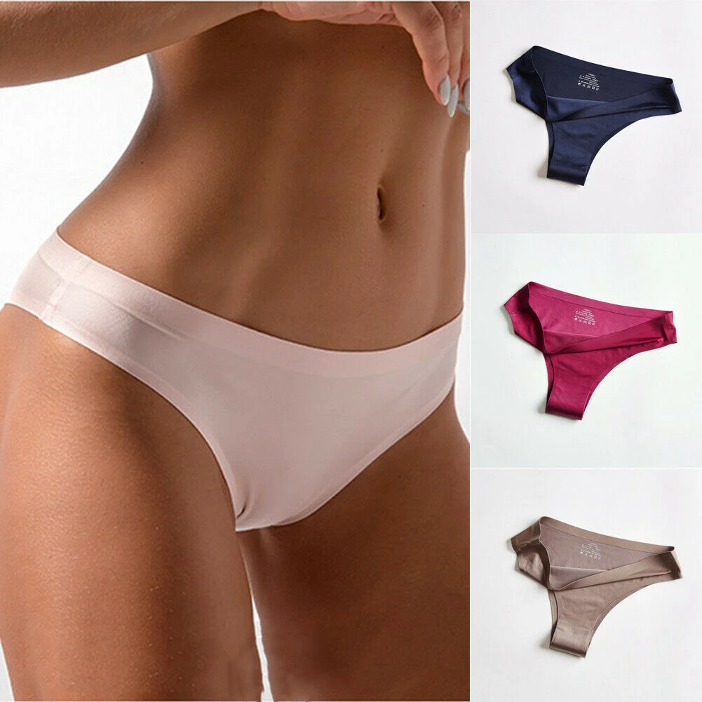 Высокое качество женские бесшовные трусики однотонные ультра-тонкие трусики нижнее белье женские сексуальные с низкой талией трусики с об...