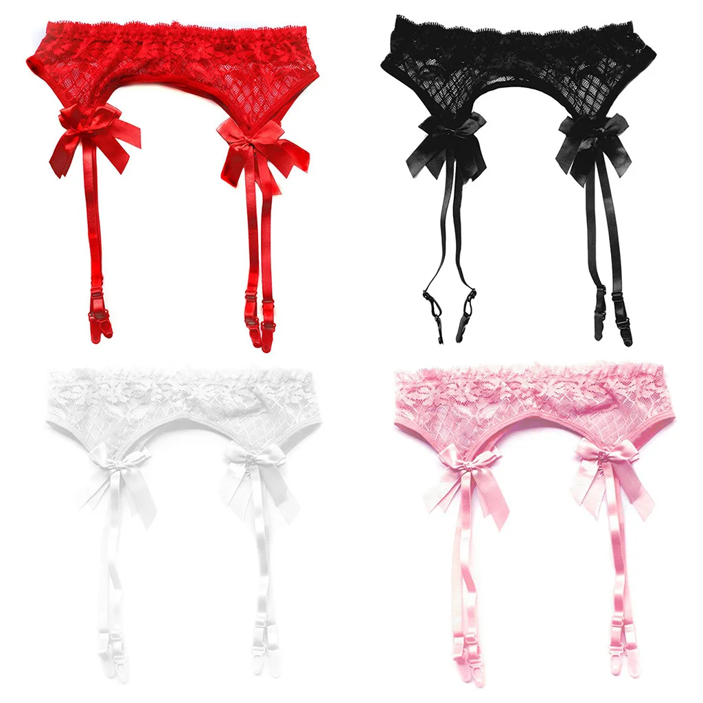 Женские эротические прозрачные сетчатые подтяжки с цветочным кружевом, украшенные бантом, регулируемые облегающие подвязки, одноцветные