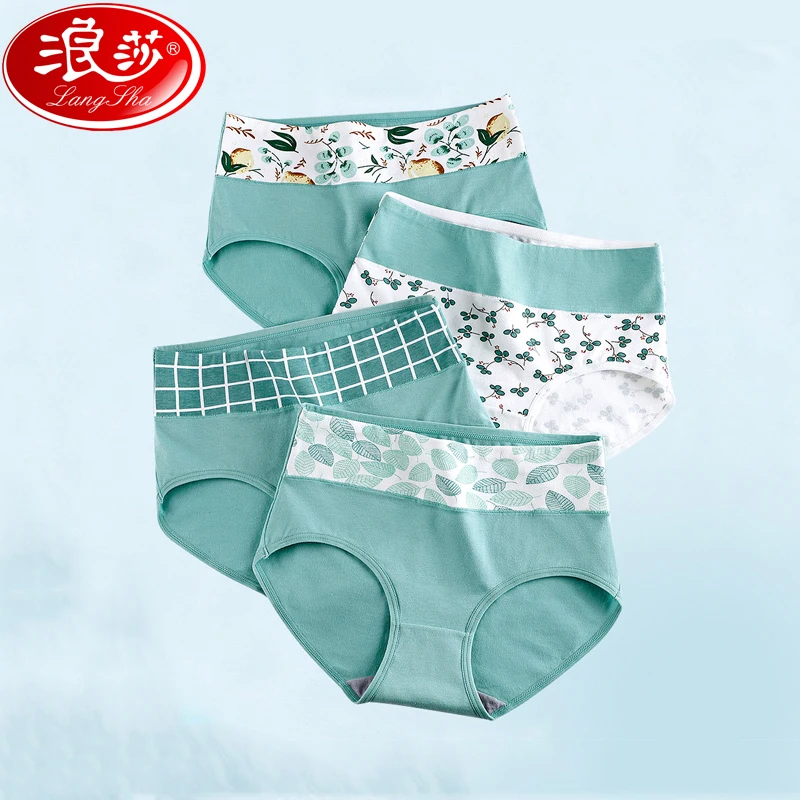 LANGSHA/4 шт./партия, Трусики с высокой талией, женское хлопковое нижнее белье, бесшовные трусы с милым принтом, мягкие дышащие трусы для похуден...