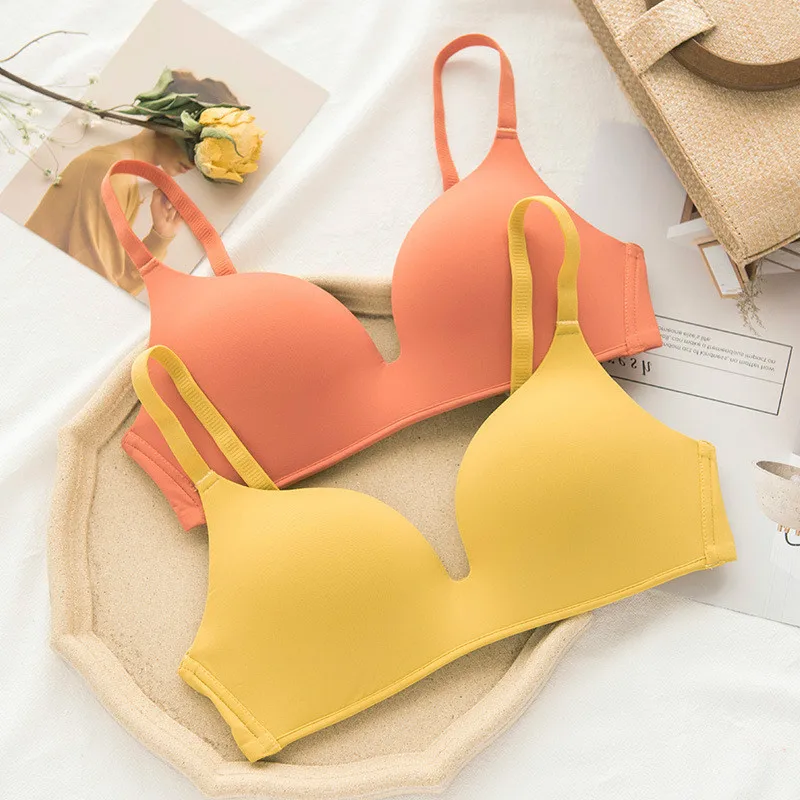 Женское нижнее белье Roseheart, модное желтое нижнее белье, беспроводной мягкий бюстгальтер, цельный Активный бюстгальтер, женские бюстгальтеры, бесшовные чашечки A B