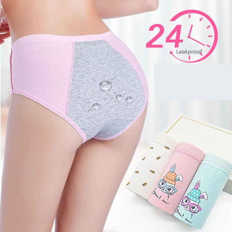 Непромокаемые менструальные трусики для женщин, герметичное хлопковое физиологичное нижнее белье, женские трусы с мультяшным принтом M L XL