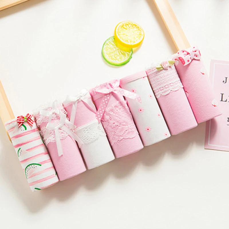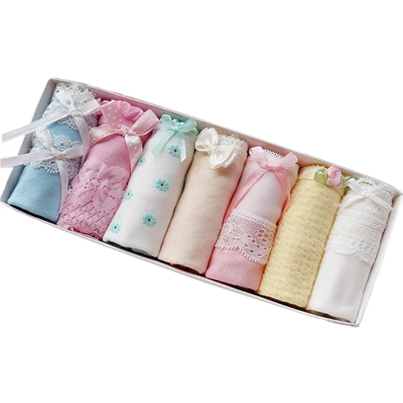 OLN 7 шт./лот, женские трусики, хлопковые трусы для девочек, повседневное нижнее белье с бантом и кружевным краем, женское Бесшовное мягкое нижнее белье для девочек
