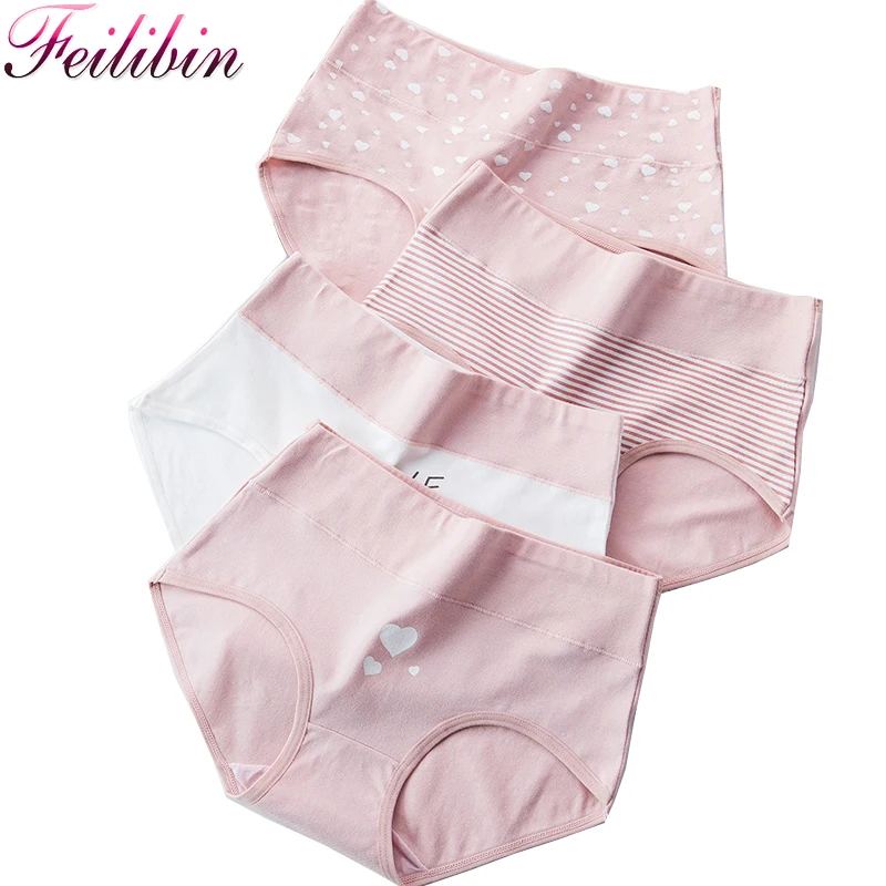 Feilibin 4 шт./лот женские трусики хлопковые с высокой талией Нижнее белье для похудения милые бесшовные трусы с принтом сексуальные дышащие трусы для девочек