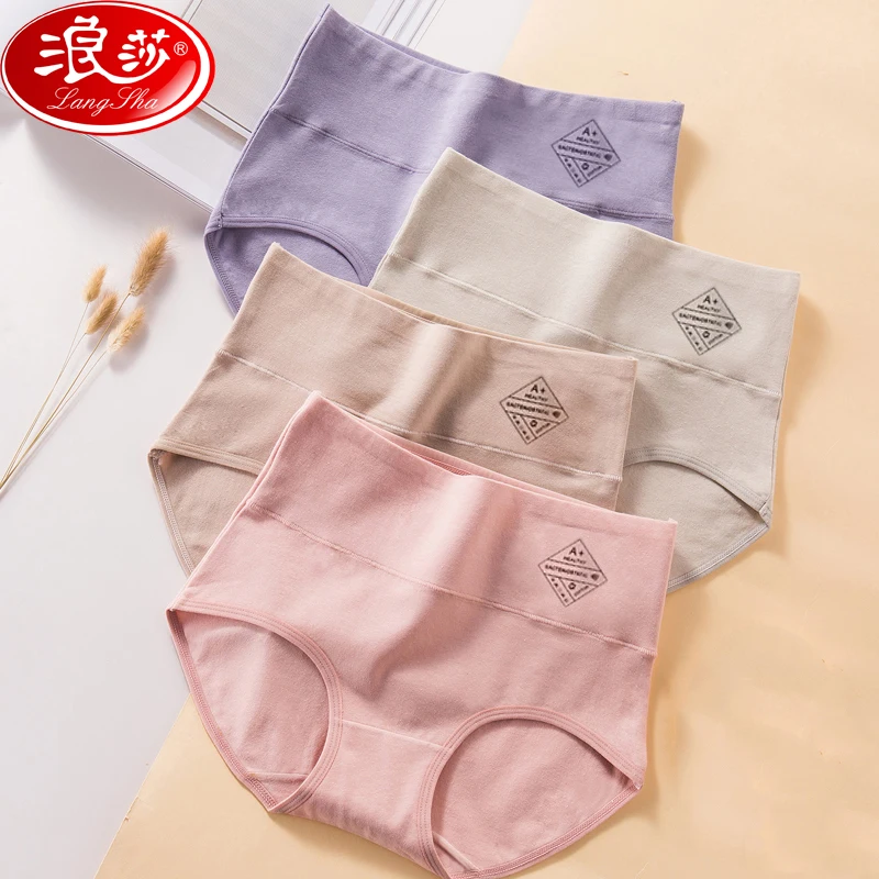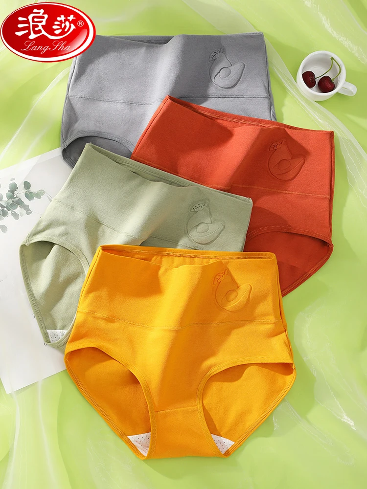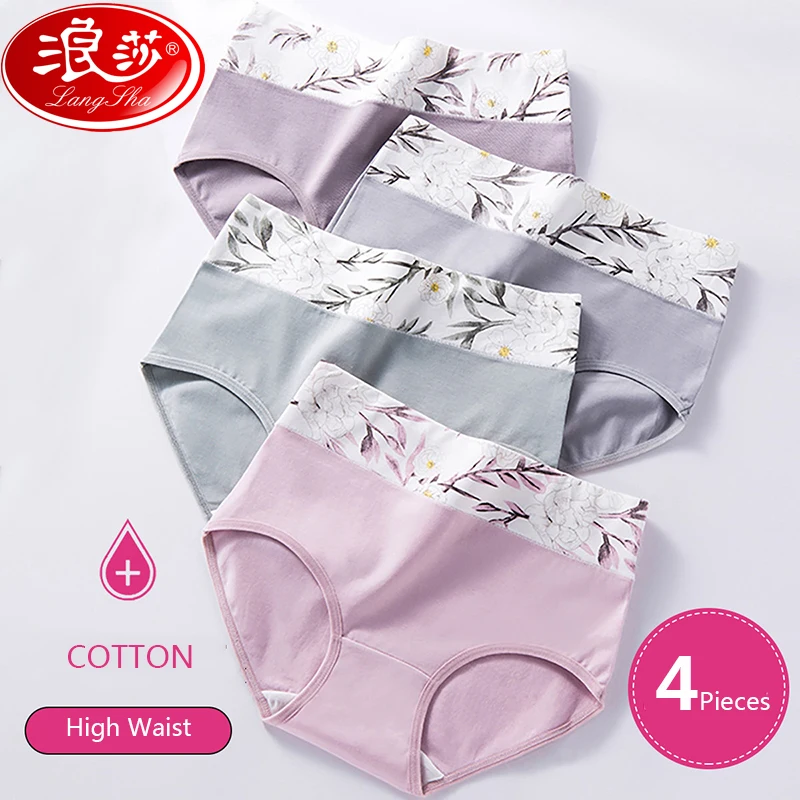 Нижнее белье LANGSHA, женские трусики хлопковые с высокой талией, 4 шт./лот