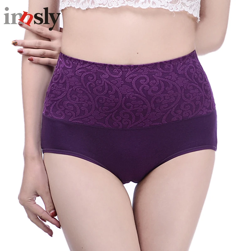 Innsly Высокая Талия Трусики Для женщин нижнее белье тонкая талия Хлопковые фирменные носки большой Размеры женские трусы Бесшовные дышащие ж...