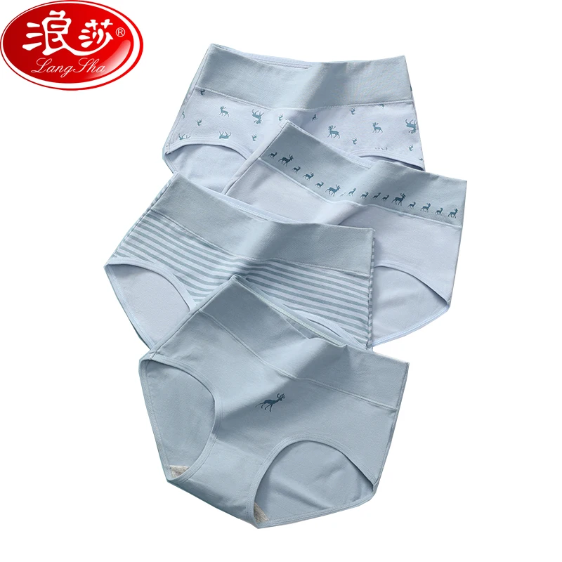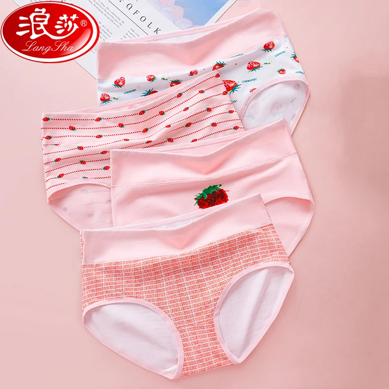 LANGSHA/4 шт./партия, женские трусики с высокой талией, дышащее хлопковое нижнее белье, милые бесшовные трусы с принтом, сексуальные мягкие трусы...