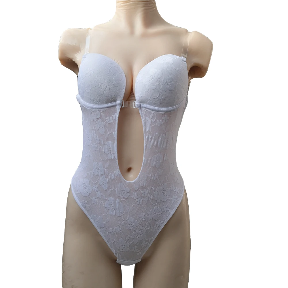 Женское боди с глубоким v-образным вырезом на прозрачном ремешке с открытой спиной, бюстгальтер с вкладышами пуш ап, Корректирующее белье, бесшовный костюм-трансформер с низкой спинкой