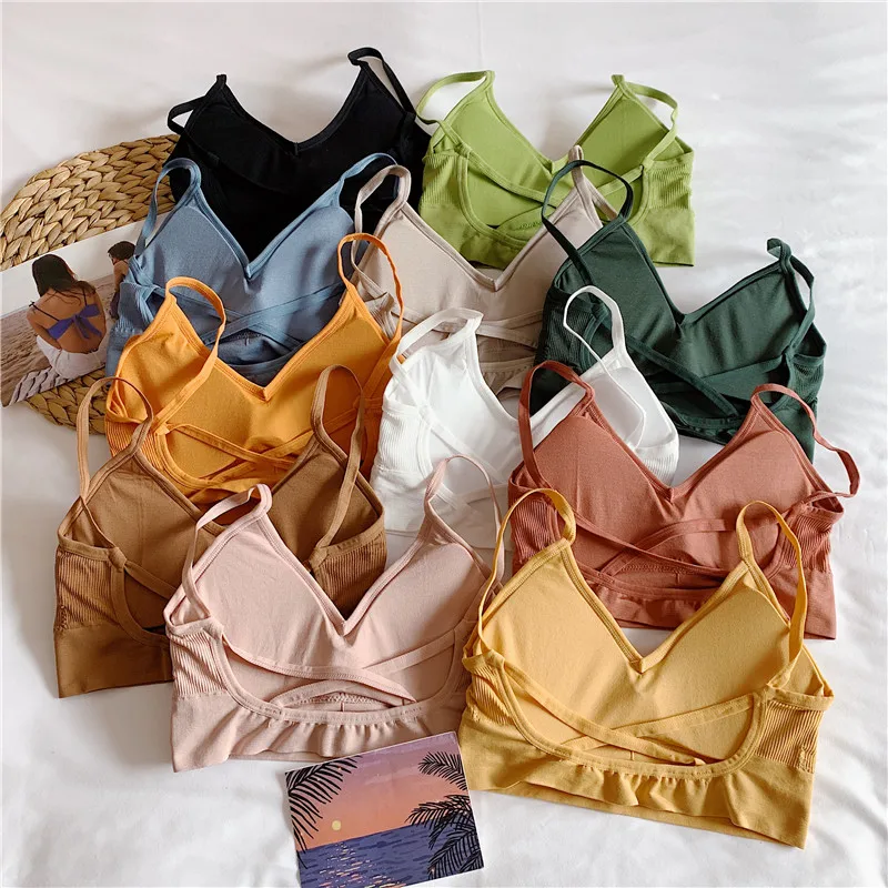 Женский бюстгальтер без косточек, беспроводное нижнее белье, бюстгальтеры для фитнеса для женщин, хлопковые укороченные топы для девушек, б...