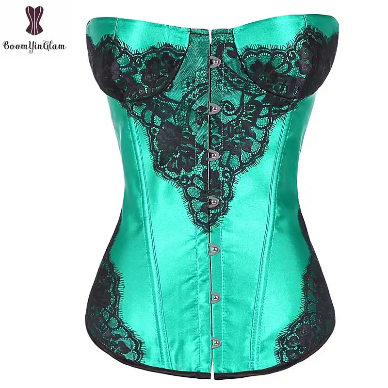 Зеленый корсет, атласный корсет, корсетт, для женщин, Кружевная аппликация, готический корсет, рыбьи косточки, талия, для похудения, одежда бюстье, сексуальный, Gorset