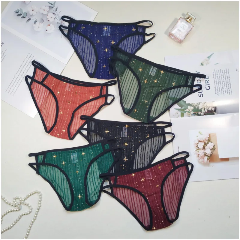 SP & CITY, милое Полосатое кружевное Сетчатое сексуальное нижнее белье, женские прозрачные трусики с блестящими звездами, женские трусы с вырез...