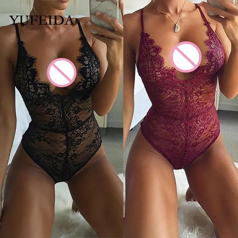 Сексуальный женский комбинезон Прозрачный женский Глубокий v-образный вырез комбинезон кружевной без рукавов ремень женский боди-костюм сетчатые Топы