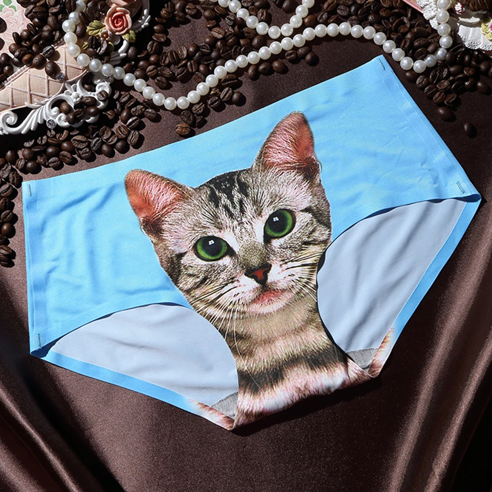 Хит продаж, женские бесшовные трусы с объемным принтом кота, женские сексуальные трусы с рисунком средней талии, женское нижнее белье