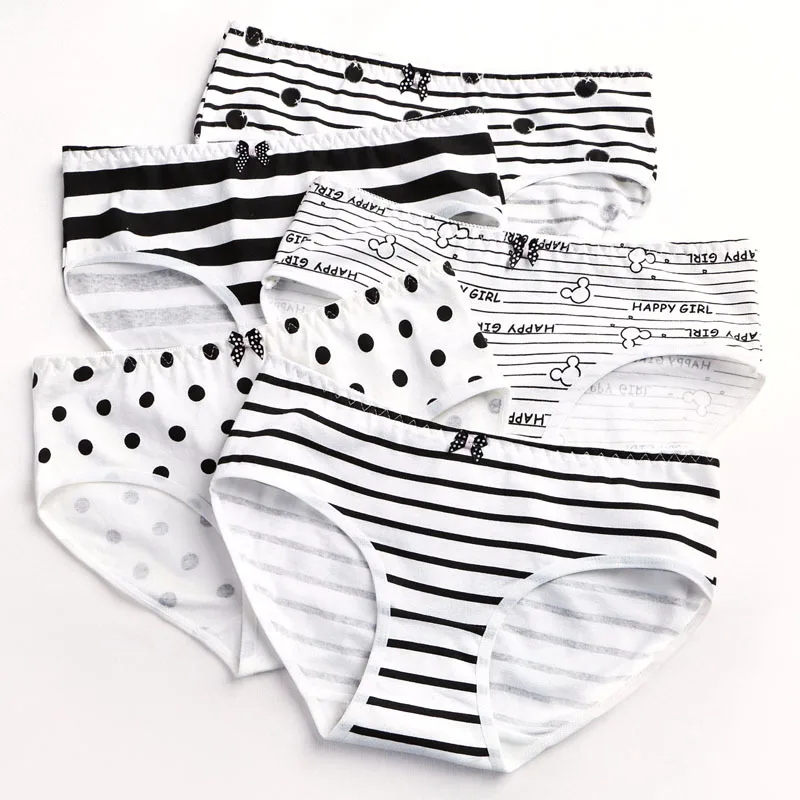 Женское хлопковое нижнее белье со средней посадкой, удобные трусы для девочек, милые трусики в черно-белую полоску для студентов