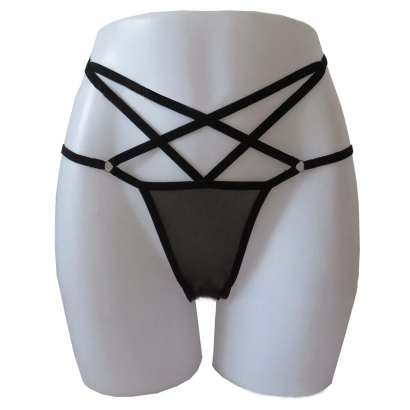 Женские сексуальные кружевные бандажные трусики прозрачные стринги черные эластичные ремни нижнее белье S, M, L, XL 2019 Горячее предложение
