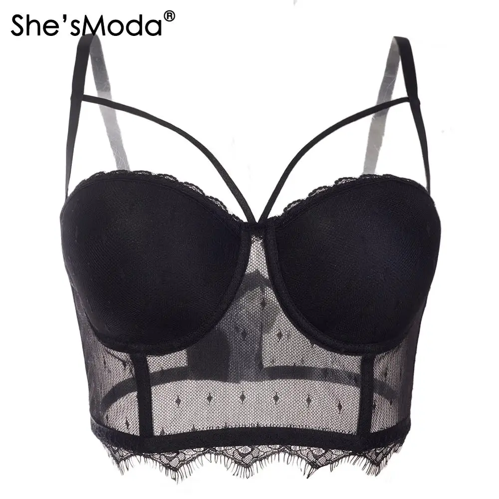 She'sModa перспективный Кружевной крест женский бюстье бюстгальтер ночной клуб вечерние обрезанный Топ жилет размера плюс