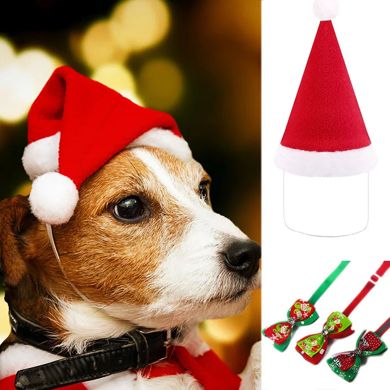 Кошка Собака Рождественская шляпа Санта-Клаус теплая шапка Рождественский праздник щенок ПЭТ галстук-бабочка галстук для собак кошка рожд...