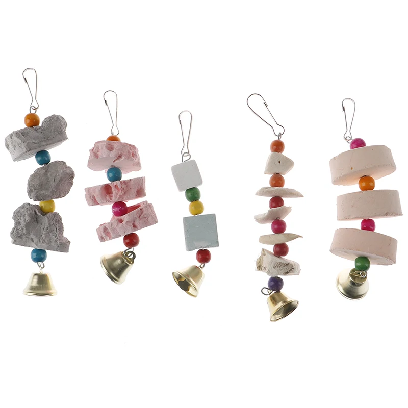 1 шт., красочные игрушки для домашних животных, попугай, птица, уход за зубами, жевательные минералы, каменная палочка, молярные игрушки, Подвесные интерактивные игрушки с колокольчиком