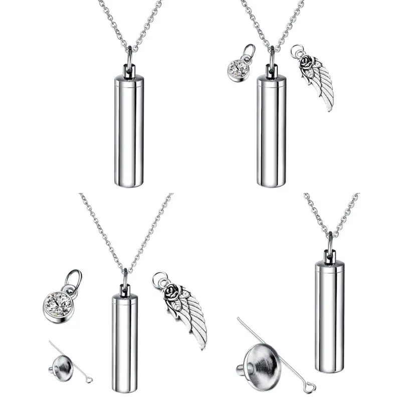 Ювелирный цилиндр для кремации из нержавеющей стали, домашнее животное ожерелье с урной на память, Крыло ангела