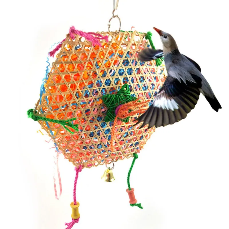 Игрушки для жевания птиц Висячие игрушечные попугаи Бамбуковая ткань клетка аксессуары Шредер для старения качающаяся игрушка для попугая...