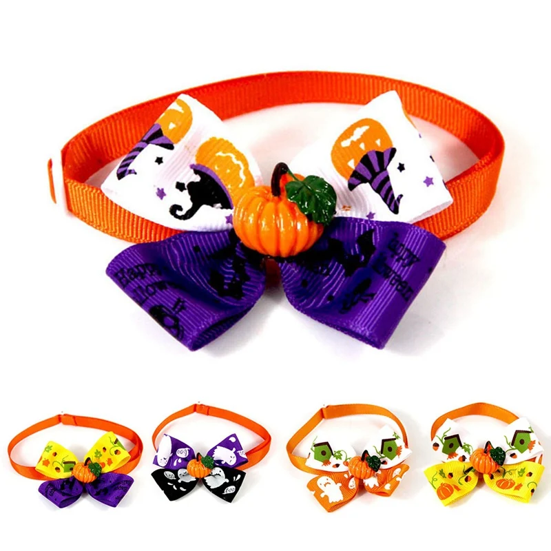 Маленькие собачьи галстуки-бабочки для фестиваля, вечерние галстуки-бабочки для щенков, кошек, тыквы, ошейники на Хэллоуин, регулируемый во...