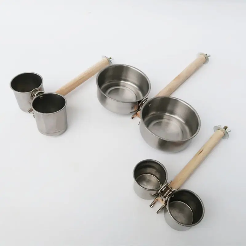 Клетка для попугая еда чашки подачи воды птицы питьевой нержавеющей стали двойные чашки с зажимом держатель