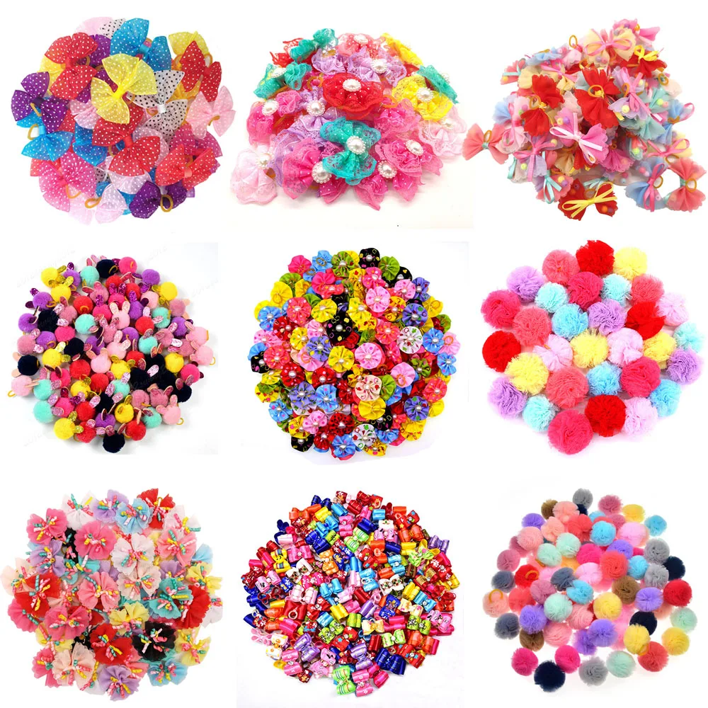 10 шт. Новые разноцветные Луки Mix Стиль резинки собака Луки Симпатичные лепесток Pet волос Луки собака аксессуары для волос Pet уход пучок