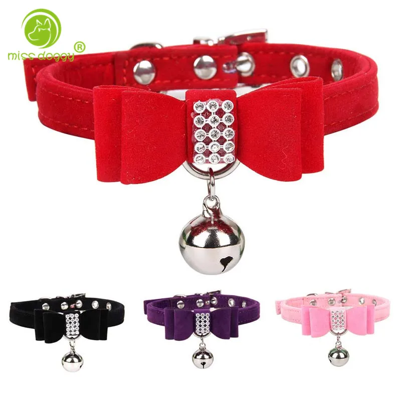Новое поступление красивые колокольчики с бантиками животное ошейник принцессы Элегантный Блестящий горный хрусталь Цепочки и ожерелья д...
